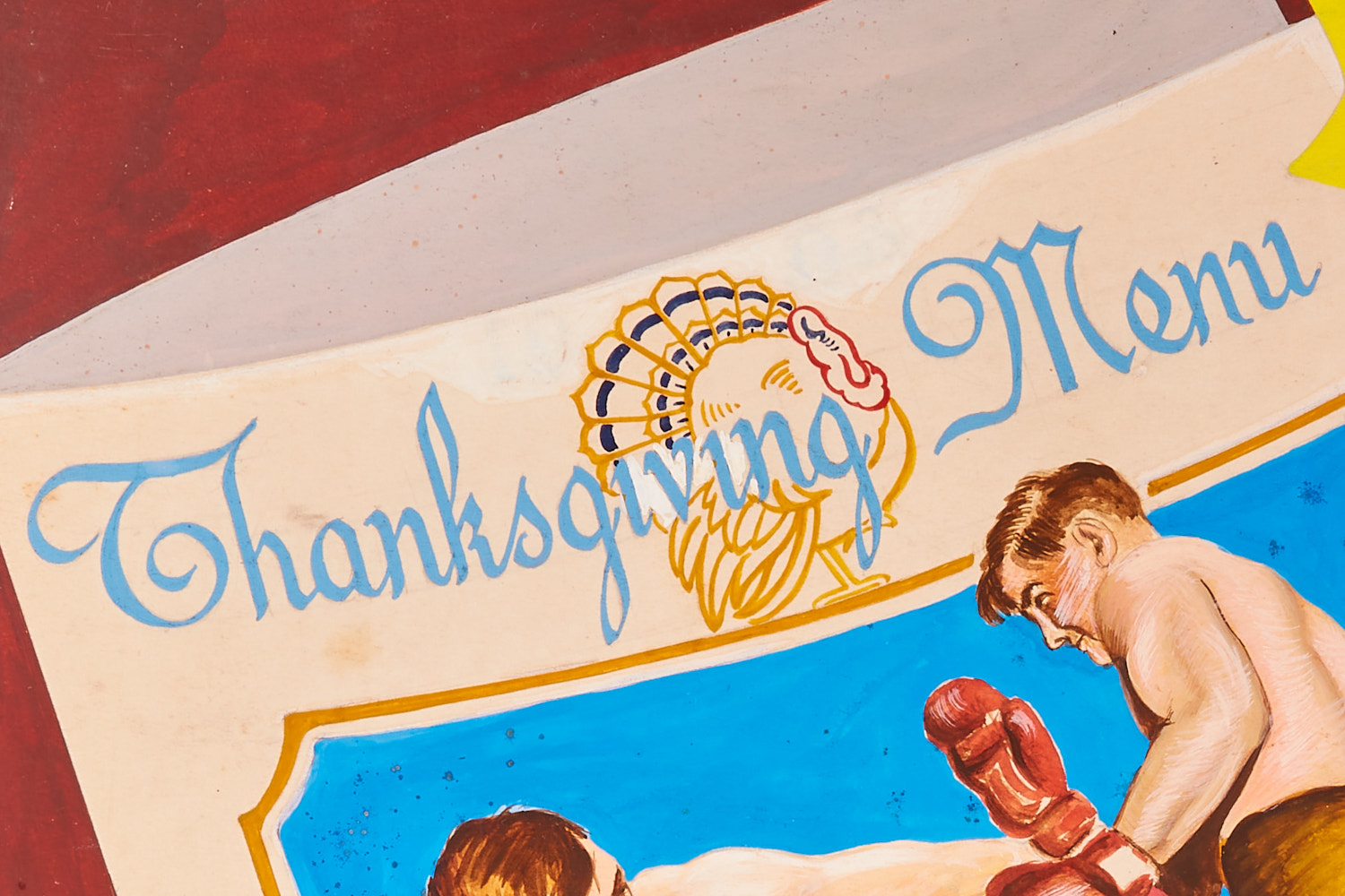 This artwork appears on the cover of the December 1948 issue of Ring Magazine.