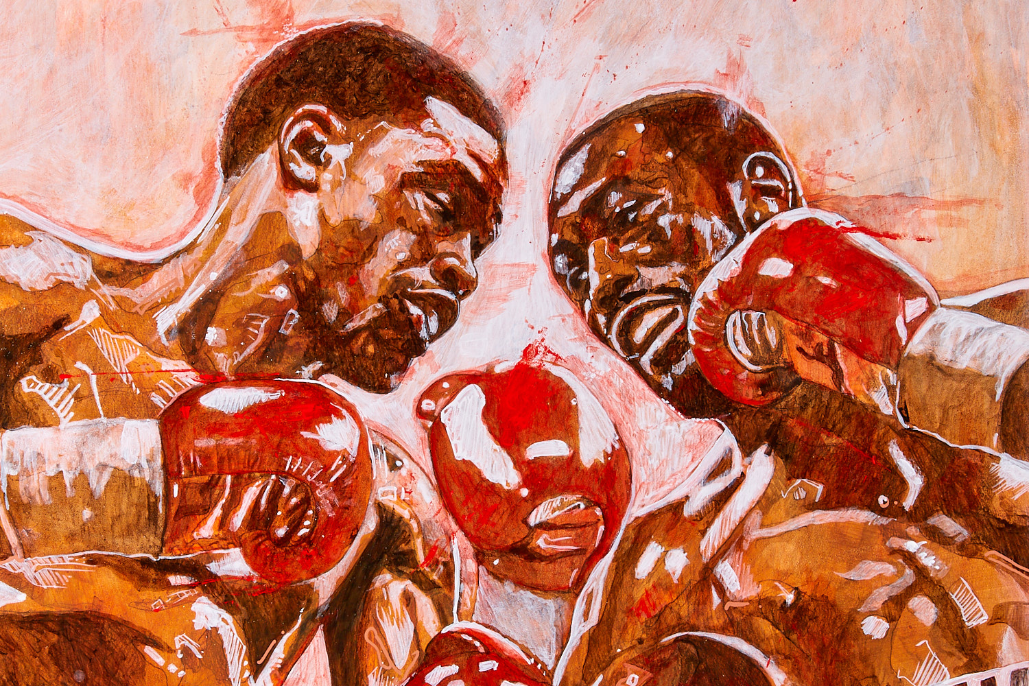 This artwork appeared on the cover of a special print edition of Ring Magazine which was published especially for this fight and served as the official artwork for the fight, as well as appearing in the official program for the fight.